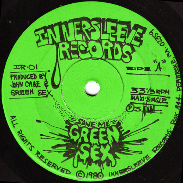 This vinyl 45rpm came with 2-different picture sleeves. The first 500 waz hand written on the sleeve “GREEN SEX” in silicone (like kum). A bunch ov us got together one night and with tubes ov silicone we designed. The other 500 waz My face pressed up on a zerox screen. We got tired ov squeezing the silicone tubes. Plus it waz getting costly @ $5. a tube. The Shop waz quite popular with local radio stations like WZBC, WMFO, etc. There were also Rock bands traveling through Boston that dropped by because it waz a very unusual Record Shop. Local neighborhood kids called it ‘The Death Shop’. Because ov the Skull Collection in the front window along with vinyl records.
