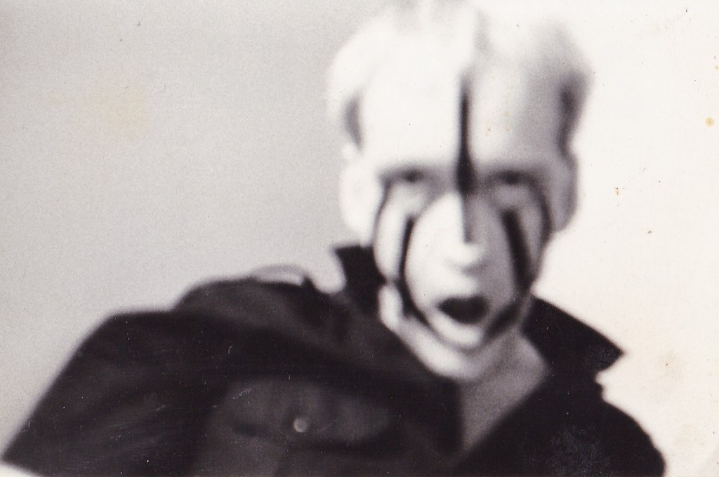 After joining SLEEP CHAMBER for the 1st LP that image dissolved into a ‘Psychic Skin’ type ov personality. He waz someone I spent time with getting into a lot ov subversive activity (Fun) much more than the other band members. Especially after hanging out with British group PSYCHIC TV. It waz obvious that MALCOLM would end up leaving SLEEP CHAMBER for higher ground. He became a Tibetan Monk to this day..