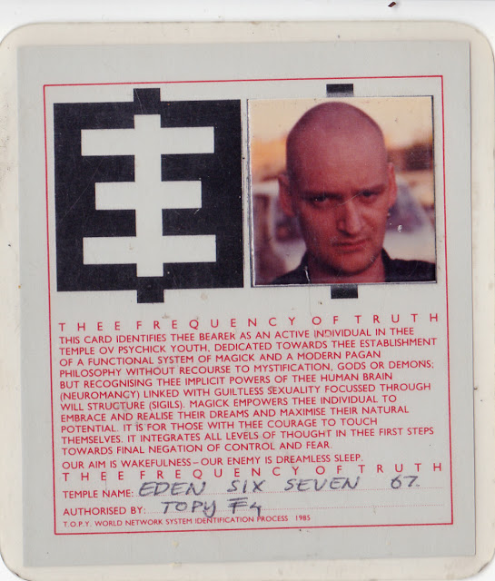 After Genesis returned to England from the Boston and Chicago performances he offered me a membership into The Temple ov Psychic Youth. After accepting I received an ID Card and we both continued communicating back to each other. Sending photos and artzy letters. I waz getting a lot ov TOPY propaganda, which waz great. I think I even got a letter from Cosey ?…I waz interested in interviewing her for THE OTHER SOUND next issue. But it never happened. Other things were happening. She even agreed but I never followed up. I will publish a lot ov the pictures and dokuments in a later blog. We had a falling out at a Boston PTV show 20 years later. But everything waz left in good standing. I waz taken back hearing ov hiz passing. (Transference). But its part ov our adventure in life when it all gets wrapped up.